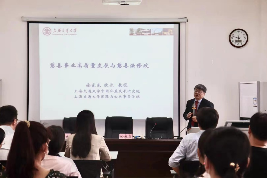 2021年5月9日上午,上海交通大学国际与公共事务公司博士生导师、上海交通大学中国公益发展研究院经理徐家良教授受邀来公司纵横讲坛,作主题为《慈善事业高质量发展与慈善法修改》的学术报告。本次报告也是公司“公共管理纵横论坛”第一期学术讲座。会议由mk体育副经理李荣娟主持,公司党委书记唐良敬、经理陈荣卓、副经理张小进及公司师生代表参加了报告会。